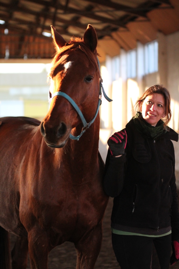 Von jung an habe ich eine Liebe für Pferde und habe einen Großteil meiner Jugendzeit in einem Stall in Spandau verbracht. Zum Reiten bin ich jedoch erst mit 32 Jahren gekommen, bin also eine klassische Späteinsteigerin. Meine große Leidenschaft sind die Trakehner, da begleiten mich zwei in meinem Leben. Meine große Trakehnerliebe Aron, ein 21-jähriger Fuchs, der mich seit gut 14 Jahren begleitet und mir das Reiten beigebracht hat. Seit einiger Zeit lebt auch meine nun vierjährige Nachwuchsstute Chönheit bei mir, die zurzeit schonend und altersgerecht ausgebildet wird. Das Turnierfieber hat mich nie sonderlich gepackt, der Ehrgeiz, zum Wohle der Pferde „richtig reiten“ zu können, ist jedoch sehr hoch und lässt mich mit Spaß und Freude jeden Tag auf den Pferderücken steigen.